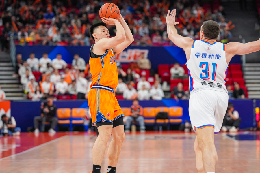 第二节两队变成相捏,大鲨鱼进犯射中率一般,李弘权投中压哨三分,上半场主队以54比44提升。