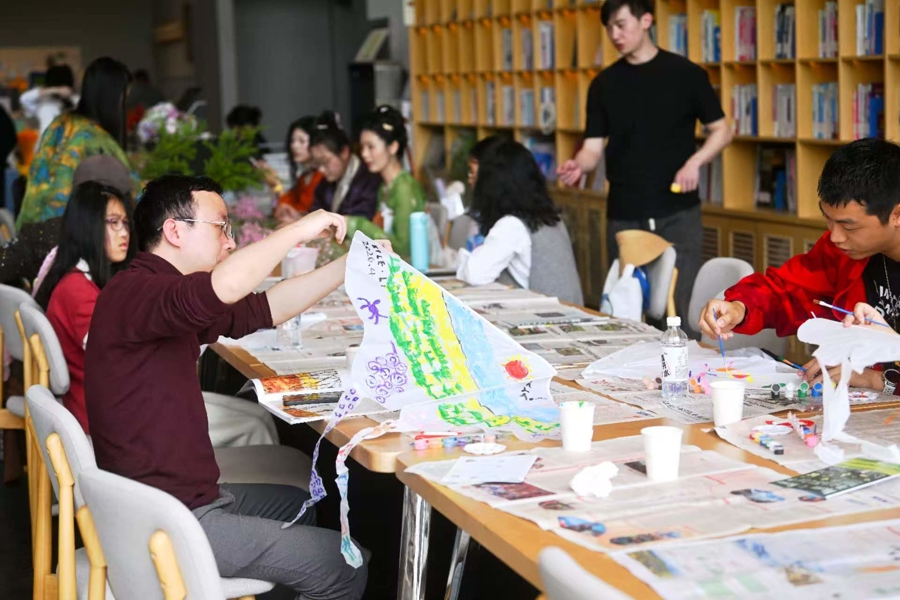 4月5日,新民晚报记者来到嘉源海。手脚艺术节的常驻活动之一,“教学100个东说念主放风筝计较”正火热开启。