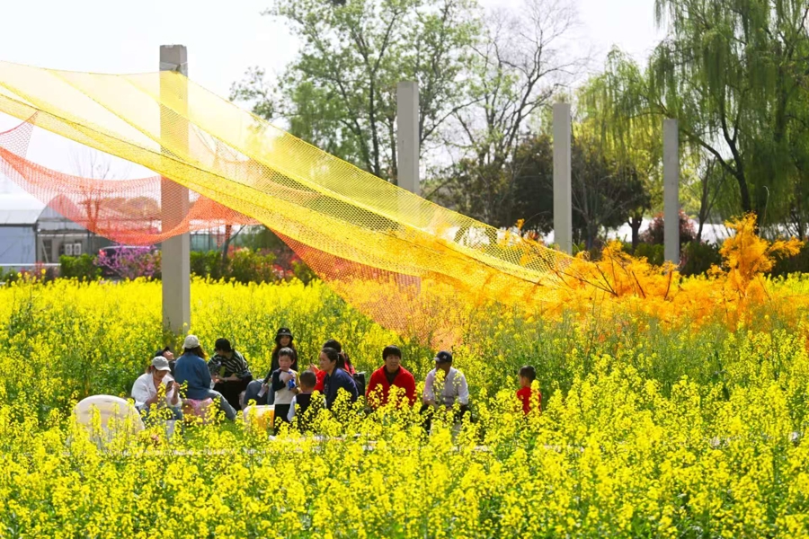嘉源海好意思术馆前,油菜花盛放。受访者供图